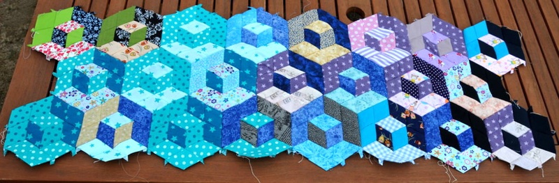 Nur konsumiert habe ich jedoch auf der Reise nicht, denn ich habe auch ein bisschen genäht. Drei Reihen meiner Babyblocks habe ich zusammengesetzt. Die obere Hälfte, hatte ich bereits vor dem Urlaub fast fertig. Jetzt müssen noch beide Teile zusammengesetzt werden.