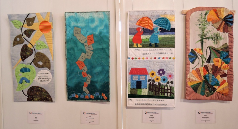 Die Quilts zur Ausschreibung "Blätter" der berliner Patchworkerinnen hingen nebeneinander. Ob di anderen auch nach Regionen sortiert waren?