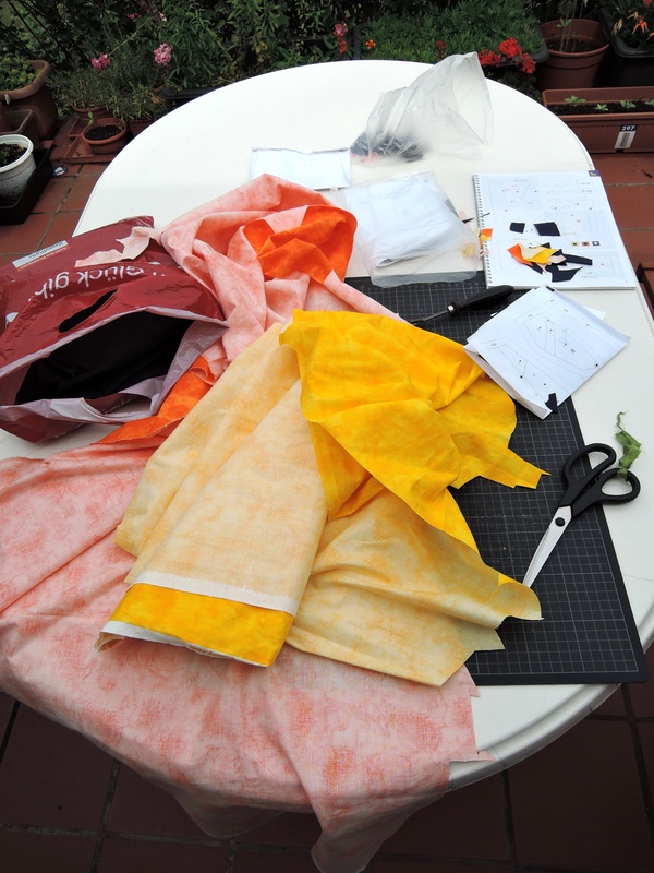 Auch bei meinen Sternzeichen gibt es einen Fortschritt. Anfang des Monats habe ich mir meine Schneidematte und meine Stoffe geschnappt und bin damit auf die Terasse gezogen. Dort habe ich die letzten drei Blöcke zugeschnitten.