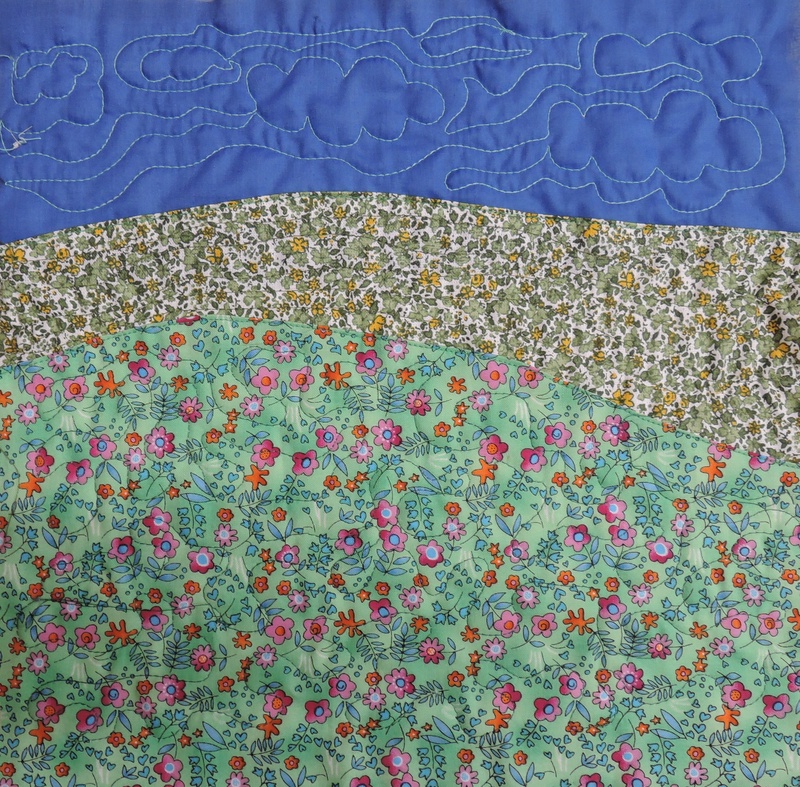 Und last but not least habe ich zwei Hintergründe für Sunbonnet Sue Blöcke gequiltet. Fehlt nur noch Sue selbst, die die Blöcke zum Leben erweckt.