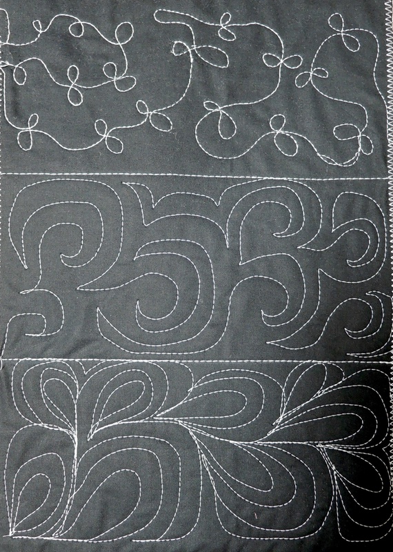 Das mittlere Muster war auch eine Herausforderung. Ich fand es schwer zu kalkulieren in welche Richtung ich quilten muss. Auch hier viel zu wenig Platz.