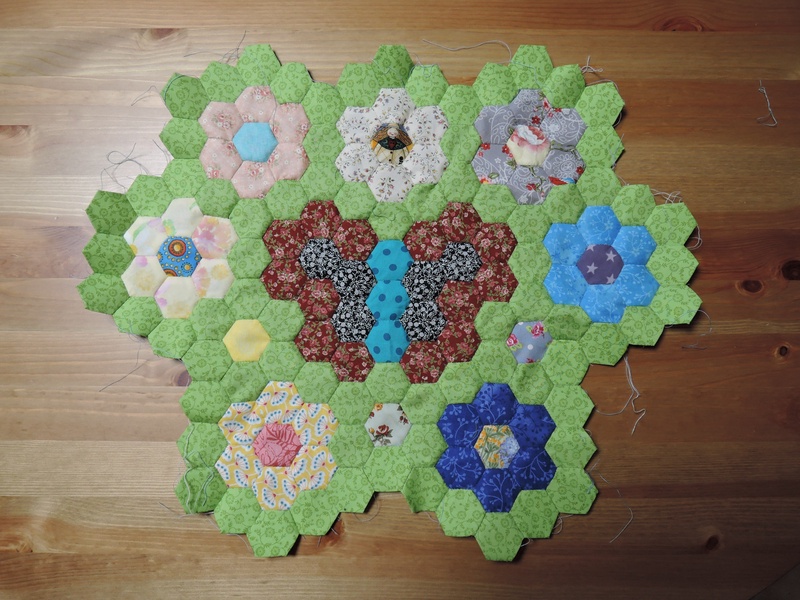 Heute ist wieder Zeigetag der langsamen Projekte. Ich bin ganz stolz, denn ich bin bei meinem Flowergarden doppelt so weit gekommen, wie ich gedacht hätte.