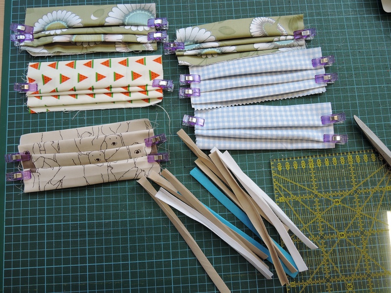 Als zweites nähte ich die Masken mit den Falten. Ich fand die Idee der Bindebänder statt Gummi gar nicht so schlecht und habe sie halb halb ausgestattet. Insgesamt nähte ich 8 dieser Sorte.