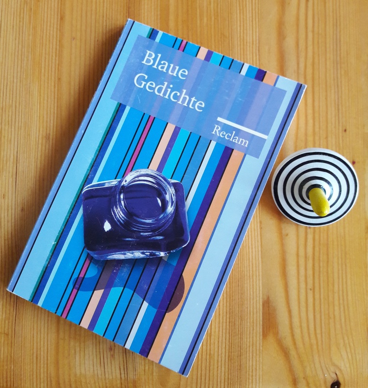 Das Juli-Thema beim Mittwochsmix (von Michaela und Susanne) ist Blau / Sehnsucht. Blau ist die Farbe der Sehnsucht. Die blaue Blume ist das Symbol der Sehnsucht in der Dichtung der Romantik. Als ich am Wochenende im Bücherregal meiner Mutter stöberte fiel mir das oben gezeigte Buch "Blaue Gedichte" in die Hände. Es ist voll von Sehnsucht, dem Tod, Kälte und Weite aber auch einigen lustigen Gedichten. Der AZULITOblues von Peter Roos listet z.B. viele unterschiedliche Blautöne hintereinander auf und topologie der sprache von Konrad Bayer ist eine Auflistung vieler blauer Worte:  blaustein, blaue wände, blaue wolken ufm.