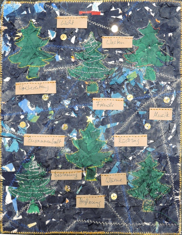 AntwortenLöschenI always love it when someone works with fabric in their art journals, and this is a real gem. It's magical and well done. I love your sewing and of course, the trees. I also love how you determined your own version of Advent. Thanks for sharing this with us at Art Journal Journey. Enjoy advent and Merry Christmas, too.
