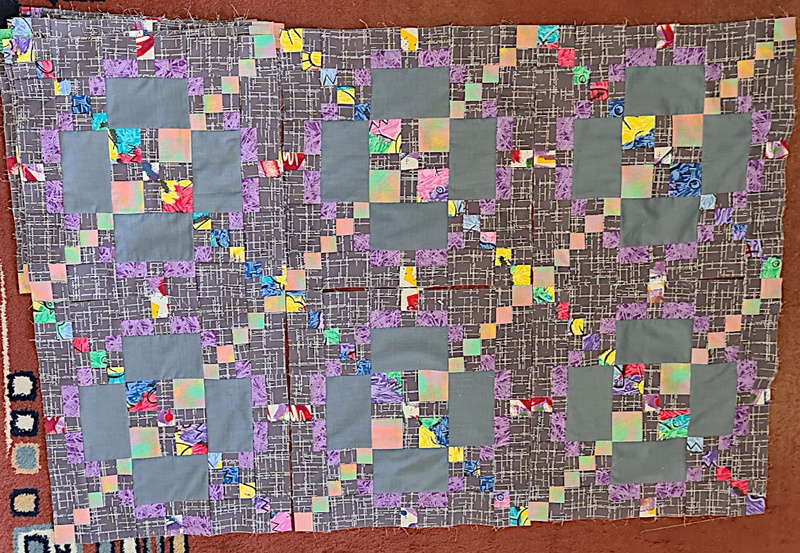 Anfag des monats Oktober kam ich mit meinem Jahresprojekt richtig gut voran. Ich habe nun 12 Blöcke fertig. Das sind alle die ich bauche. Nun müssen diese mit einem Steg verbunden werden. Jetzt kam ich wieder ins Stocken, denn ich glaube, der graue Stoff von den vier Rechtecken im block reicht nicht für die Stege. Also muss ich wieder in mich gehen und überlegen, welches Grau ich für die Stege nutze. In der zweiten Oktoberhälfte prasselten dann so viele Termine auf mich ein, dass ich nicht viel Zeit hatte, ober das Jahresprojekt nachzudenken. Immer wenn ich am Bügelbrett vorbeikam, dort lagen die Blöcke, schaute ich schnell wieder weg, damit das schlechte Gewissen nicht zu groß wurde. Jetzt ist November und jetzt muss ich den nächsten Schritt angehen. Ungefähr in einem Monat werde ich berichten.