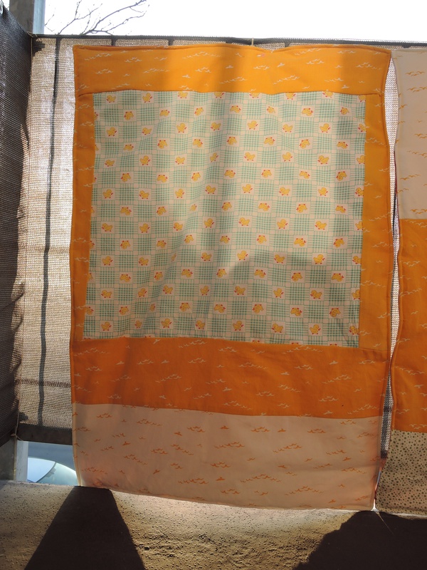 In der ersten Decke habe ich ein Kopfkissen aus meiner Kinderzeit mit verarbeitet.