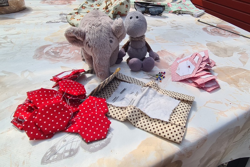 Heute waren wir im Garten. Wir hatten das Nähzeug mit.