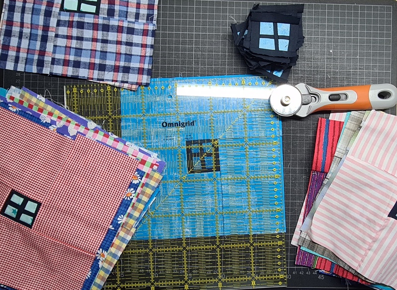 Neulich hielt ich das Häuser-Patchwork Buch von Bernadette Mayr in den Händen und musste spontan an mein Häuser-Ufo denken. Wie viel Blöcke ich wohl schon genäht habe? Ich habe ja immer mal wieder welche genäht und dann in den Karton gelegt. Ich guckte nach und fand, dass das schon eine ganze Menge sind. Also habe ich sie mal durchgezählt und danach ausgelegt. Siehe da, sie reichen schon.
