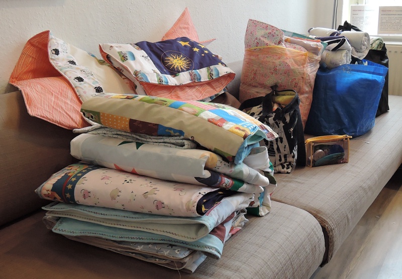 Zwischenzeitlich lagerten wir die fertigen Decken auf dem Sofa.