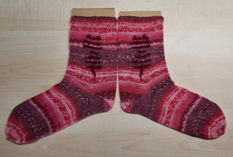 1. Die eingestrickte Katze ist ja witzig. Ganz süße Socken!