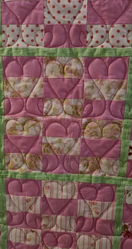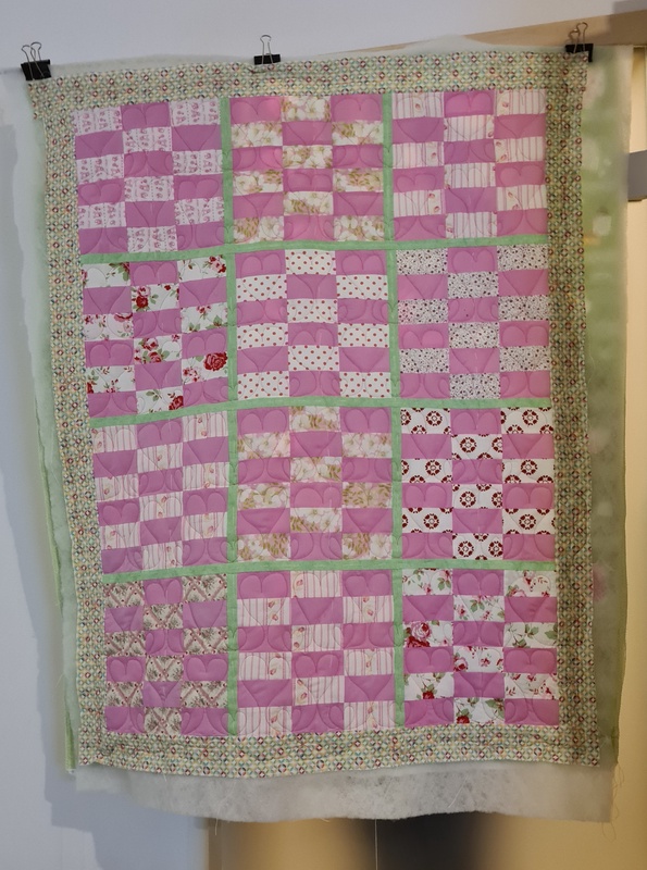 Zu guterletzt durfte ich wieder eine Spendendecke quilten. Ich habe mich für Herzen entschieden.