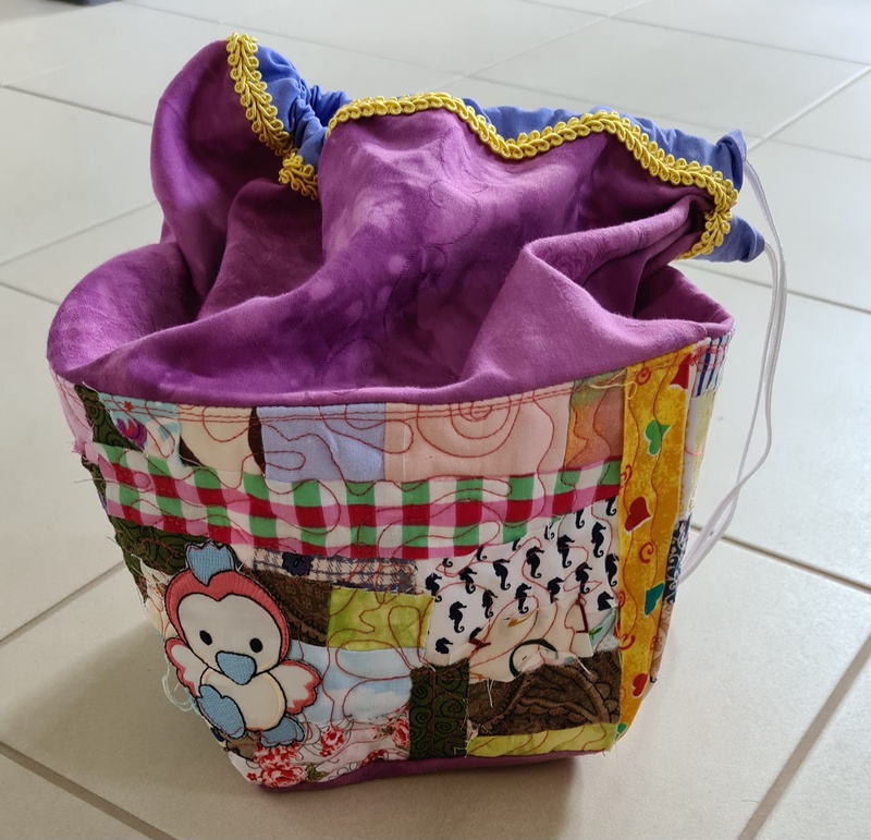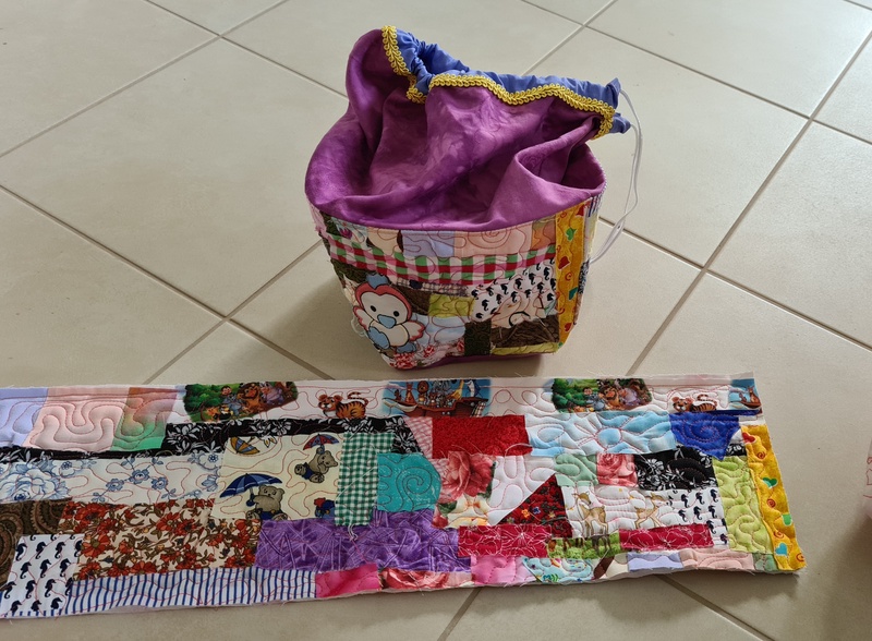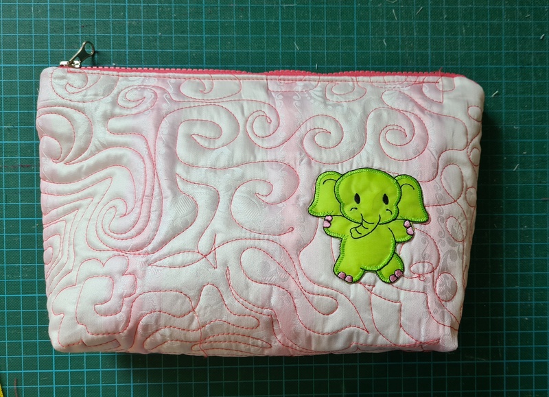 Den gequilteten Stoff habe ich dann zu Projekt-/Kulturtaschen verarbeitet. Die Tasche mit Elefant bleibt bei mir.