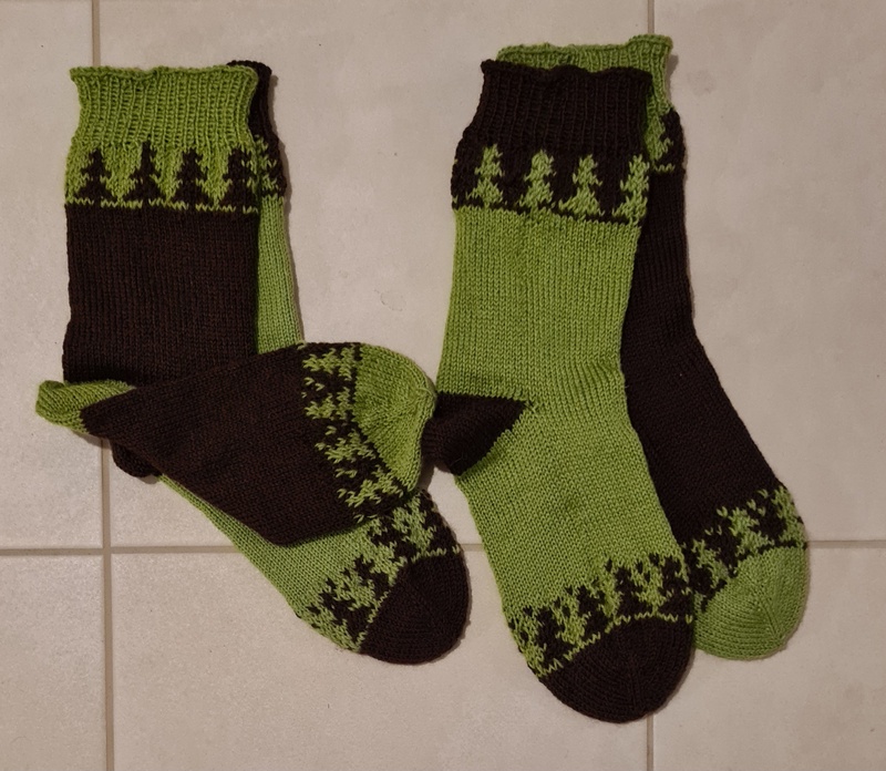 Nachdem ich meine Kopfblockade aufgehoben hatte, konnte ich weitere zwei Socken stricken. Nun habe ich zwei Paar in verschiedenen größen. Die eine socke ist jeweils farblich gespiegelt. Jetzt bin ich das erste mal in diesem Jahr "sockenfrei", d.h. ich habe keine Socken in Arbeit. Ich muss unbedingt in der Familie fragen, ob für den Winter neue Socken gebraucht werden, damit ich einen Grund habe neue/weitere zu stricken.