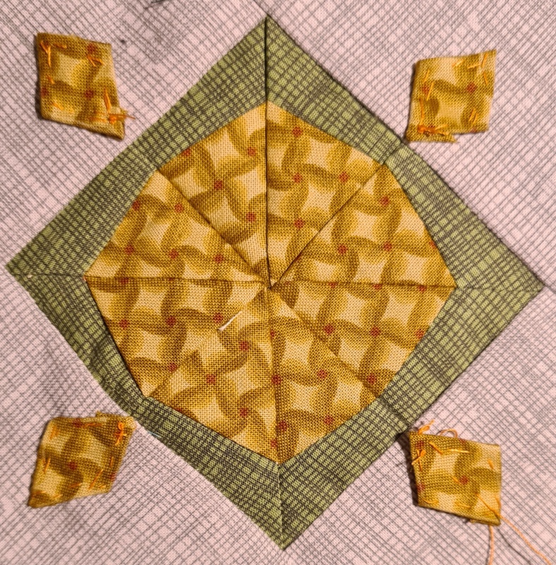 Freitag habe ich einen weiteren Block genäht. Er ist noch nicht ganz fertig, denn die Rauten sind bislang nur geheftet. Eigentlich wollte ich die Mitte mit unterschiedlichen Stoffen nähen. Tja, seht selbst, was aus dem Vorsatz wurde.....