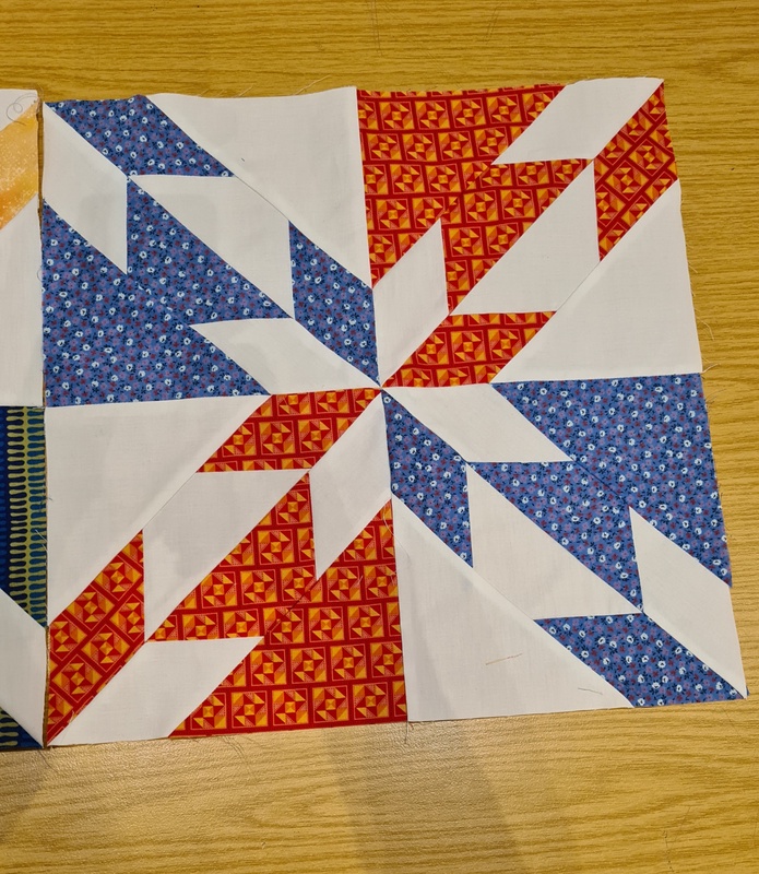 Heute war  ich in Friedrichsfelde zum Nähtreffen. Wir haben uns dort getroffen um Spendendecken zu nähen. Ich selbst habe eigentlich nur dunkelblau/weiße Dereiecksblöcke genäht.
