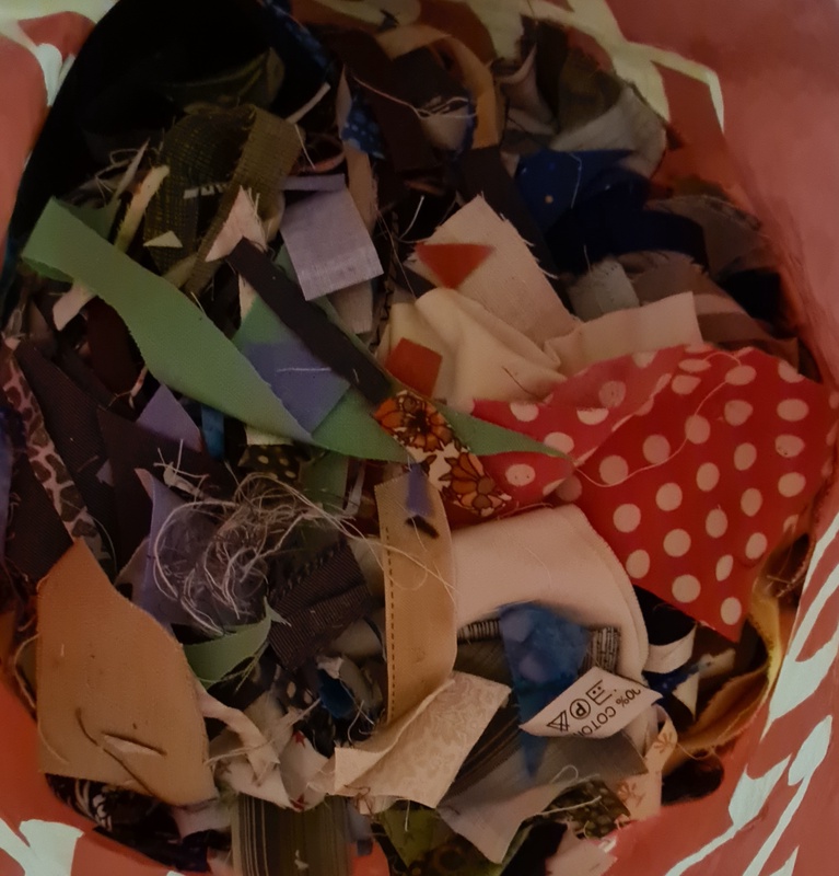 Unter dem Motto "Weniger ist mehr 1000 Teile raus" motiviert Valomea uns Ordnung zu schaffen. In der erste ersten Woche des Jahres habe ich meine Scrap-Boxen sortiert. Es tauchten einige angefangene Blöcke auf. Die kleinen Stoffstückchen wurden nach Farben sortiert. Das meiste ist um die 3 cm groß.  Aber es waren auch sehr kleine Stückchen dabei und die sind jetzt aussortiert. Immerhin ca. eine halbe Tüte.