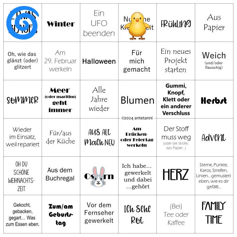 Die kleinen Näharbeite verhelfen mit zu einem Kreuz auf der Bingokarte.