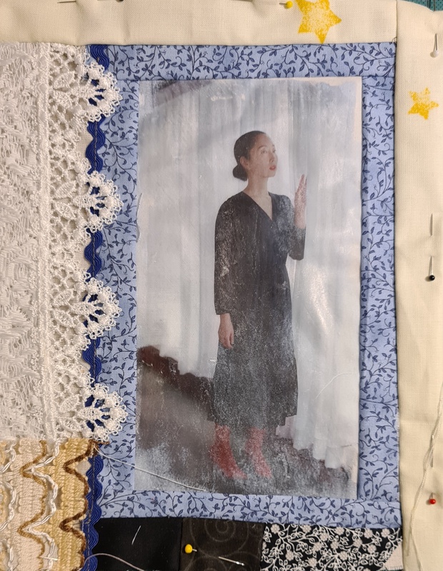 Das mittlere Bild ist in der Fototransfertechnik auf (kunst?)Seide übertragen. Im unteren Bereich werde ich noch etwas nacharbeiten. Allerdings habe ich festgestellt, dass sich die Drucke aus Werbezeitschriften anders verhalten als Zeitung- oder Buchdrucke. Deshalb muss ich sehr vorsichtig sein.