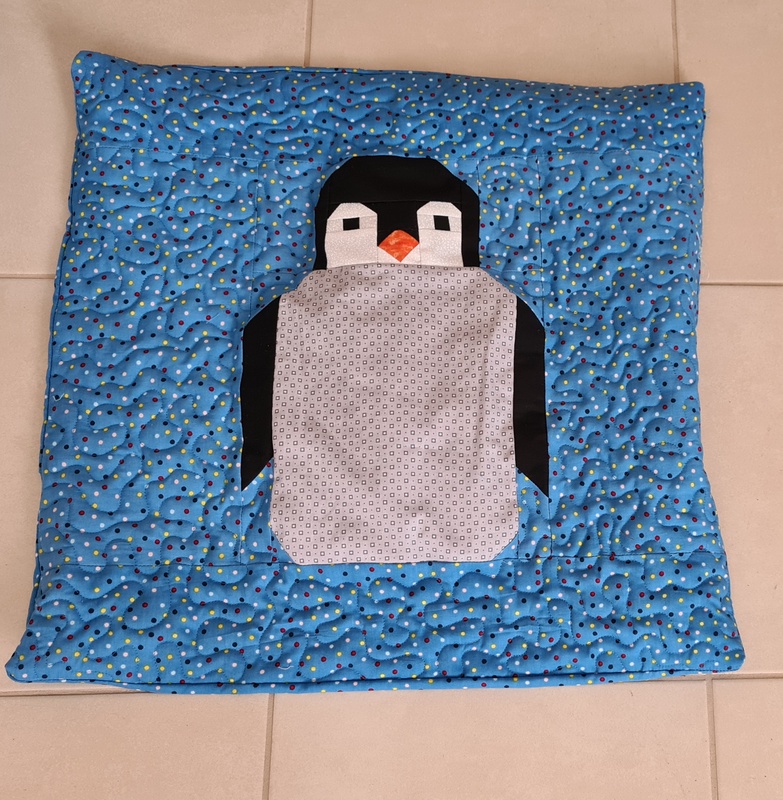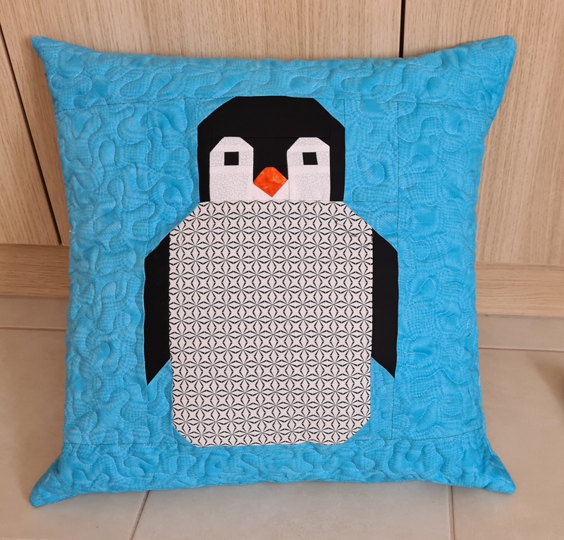 Für eine Pinguin-Liebhaberin habe ich ein Kissen genäht. Da mir der kleine Vogel so gut gefiel habe ich uns auch noch eines genäht. Auf dem Bild unten ist der Bezug noch ohne Füllung.