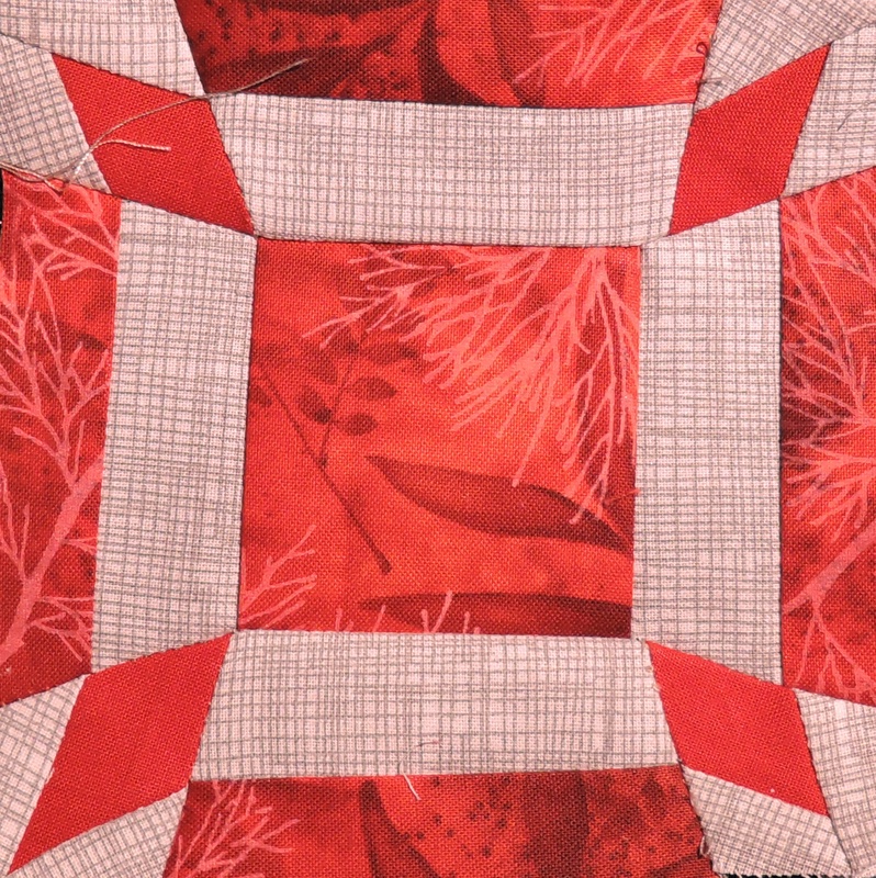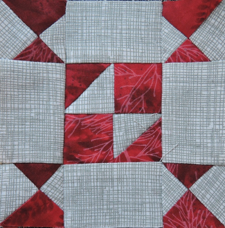 Vor drei Wochen hatten trafen wir uns zum gemeinsamen nähen. Es gab keine Themenvorgabe. Zuerst wollte ich den Gilde Mystery weiternähen. Das Heft kam nämlich einige Tage vorher bei mir an. Doch dann sah ich, dass hier Dreiecke geschnitten und genäht werden müssen. Und so entschied ich mich mal wieder in meine Dear Jane Mappe zu gucken. Da war ein Block, der sich gut mit der Maschine nähen ließe. Doch oh Schreck. Wie lange brauchte ich dann wirklich für diesen 11,5 cm gorßen Block? Drei Stunden waren es. Das hatte ich nicht erwartet (hatte ich doch noch andere Projekte im Gepäck).