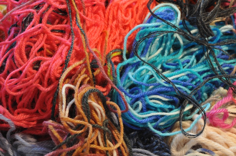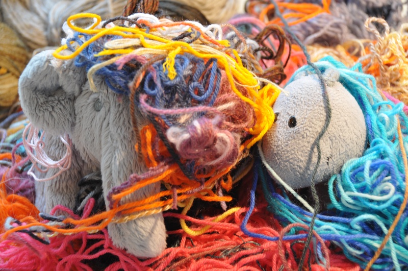 Zum Thema Chaos viel mir als erstes meine Tüte mit Wastyarn (Abfalllgarn) ein. Und so sind einige Fotos entstanden.