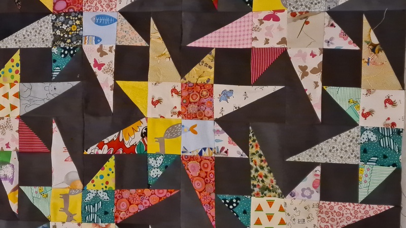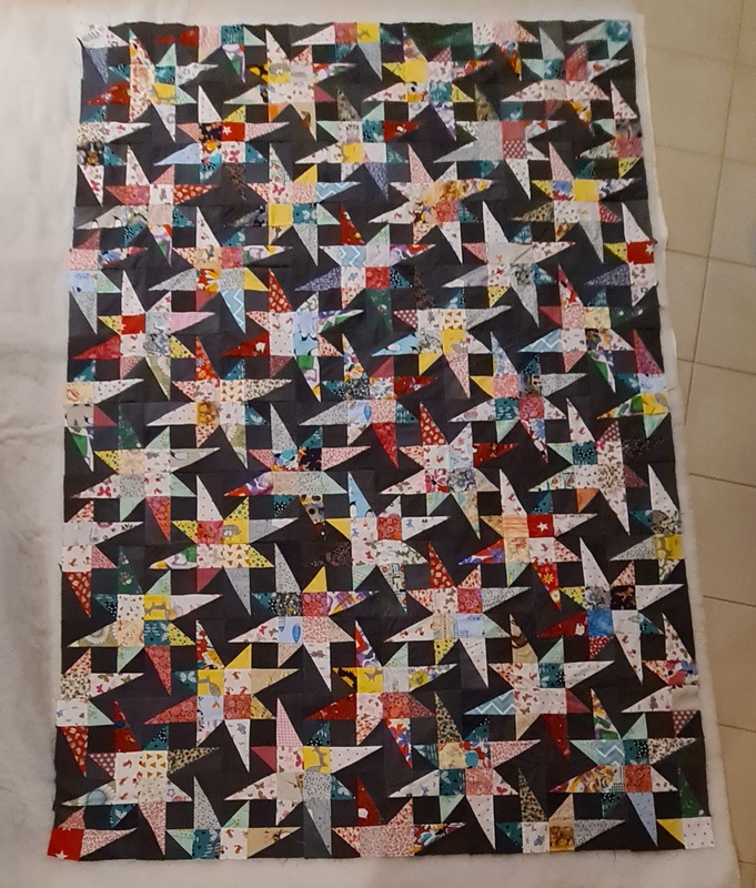 Der Quilt wir ziemlich groß. Das Sandwitch ist zusammengelegt. In dieser Woche schaffe ich das Quilten nicht. Wenn ich es bis zum 15.04. schaffe, kann ich ein Foto für die Gilde-Zeitschrift einreichen. Ich hoffe auf die Osterfeiertage.