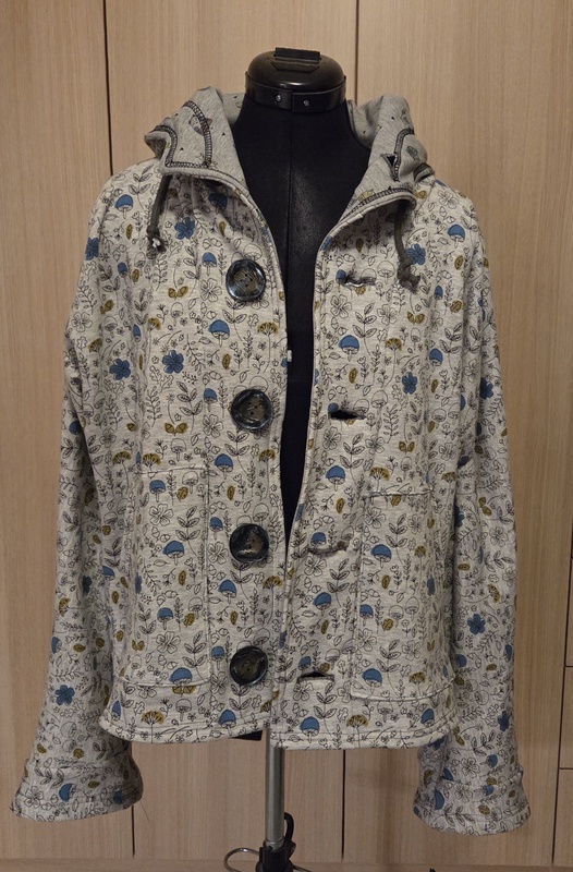 Meine Anfang März begonnene Jacke ist fertig. Natürlich ging es auch hier nicht ohne Probleme. Das Problem bei dieser Jacke war, dass die Fäden der Coverlock ständig gerissen sind. Auf dem nächsten Bild könnt Ihr erahnen, dass die Jacke lange Coverlocknähte hat. Meine Freundin sagte mir, dass es am Garn liegen könne. Und tatsächlich, mit anderem Garn trat das Problem nicht mehr auf. Leider habe ich der Kapuze jetzt einige nicht ganz so schöne Stellen. Ich habe versucht, es mit der Hand zu korrigieren, aber etwas sieht man es trotzdem.
